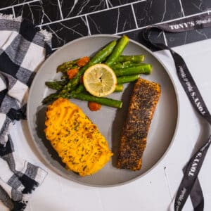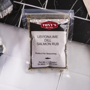 Tony’s Lemon Dill Salmon Rub adds a clean, fresh flavor. It brings out the best in salmon without overpowering it.