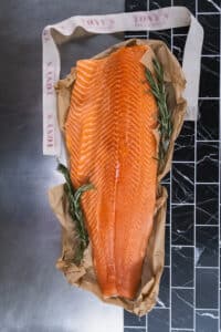 This salmon is raised in the cold waters off the coast of Scotland. Because of this, it has a rich flavor and a firm texture.
