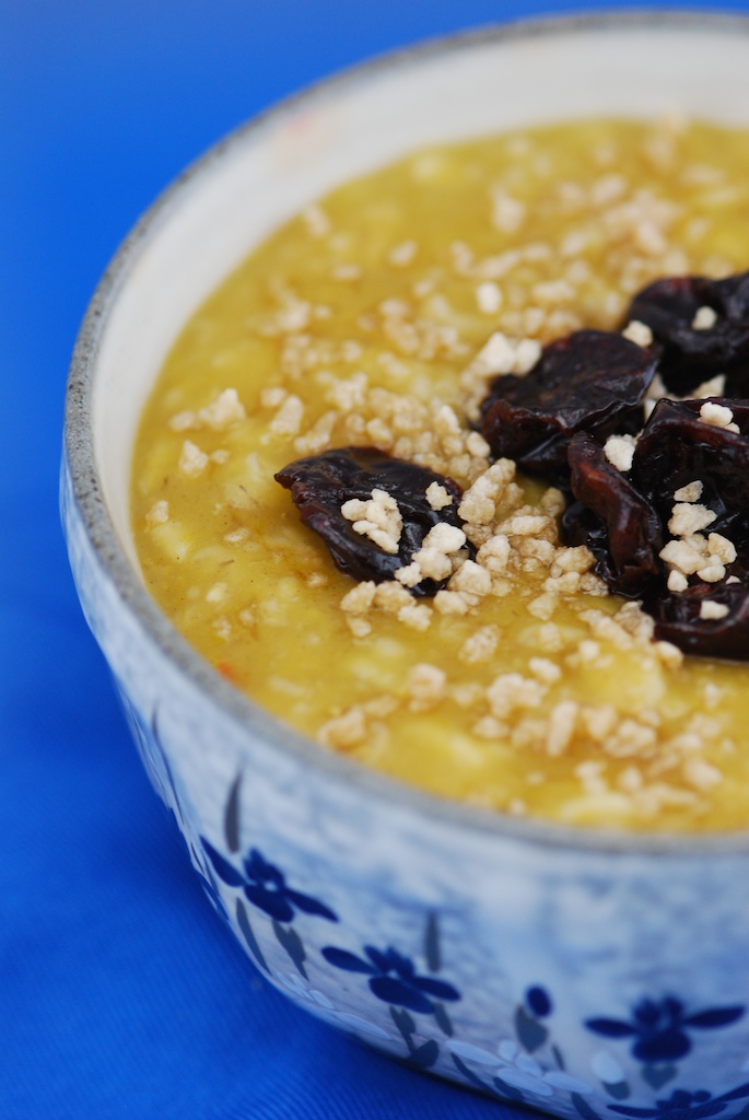 Stir in cream and butter (if using, I don’t think it needs it, but would be rich and lovely). Serve with a topping of dried fruit and maple sugar for crunch. Other possible toppings include dark chocolate chards and roasted or candied pecans.