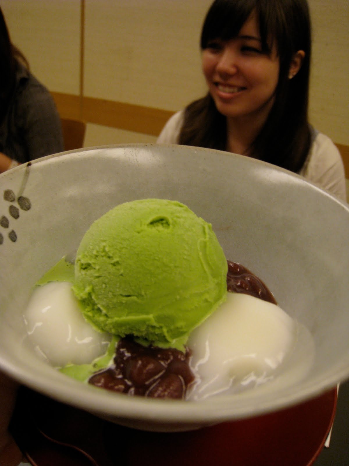 Left: What is a meal without dessert! My daughter Stephanie’s Matcha Shiratama (green tea ice cream with soft mochi and sweet red beans)
